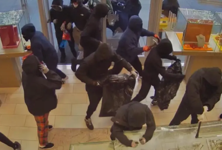 Asalto masivo a joyería en California: 25 delincuentes roban mercancía por un millón de dólares.