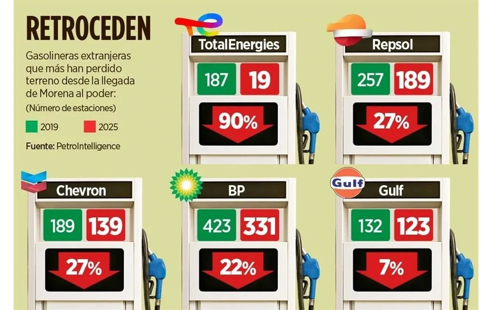 Analistas del sector señalan que este fenómeno responde a una política energética que ha favorecido el fortalecimiento de la paraestatal, dificultando la importación directa de combustibles y el almacenamiento para los privados. Esto ha reducido los márgenes de ganancia de firmas internacionales que no han podido competir con los beneficios fiscales y de logística que ostenta Pemex bajo la administración actual.