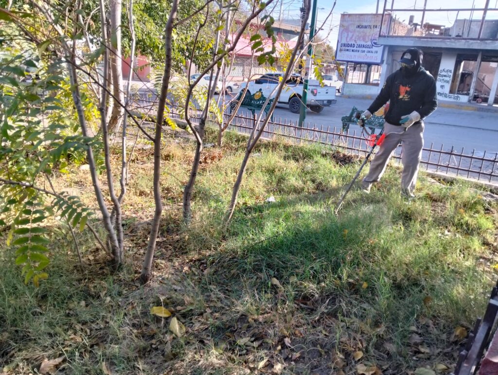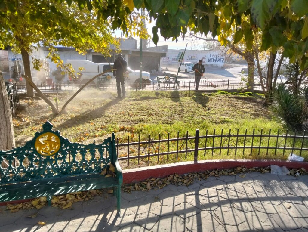 La Dirección General de Servicios Públicos Municipales, a través de la Dirección de Parques y Jardines, realizó una jornada de mantenimiento integral en la Plaza Zaragoza. Este espacio, localizado al sur de Ciudad Juárez, es un punto de encuentro clave para las familias de ese sector.